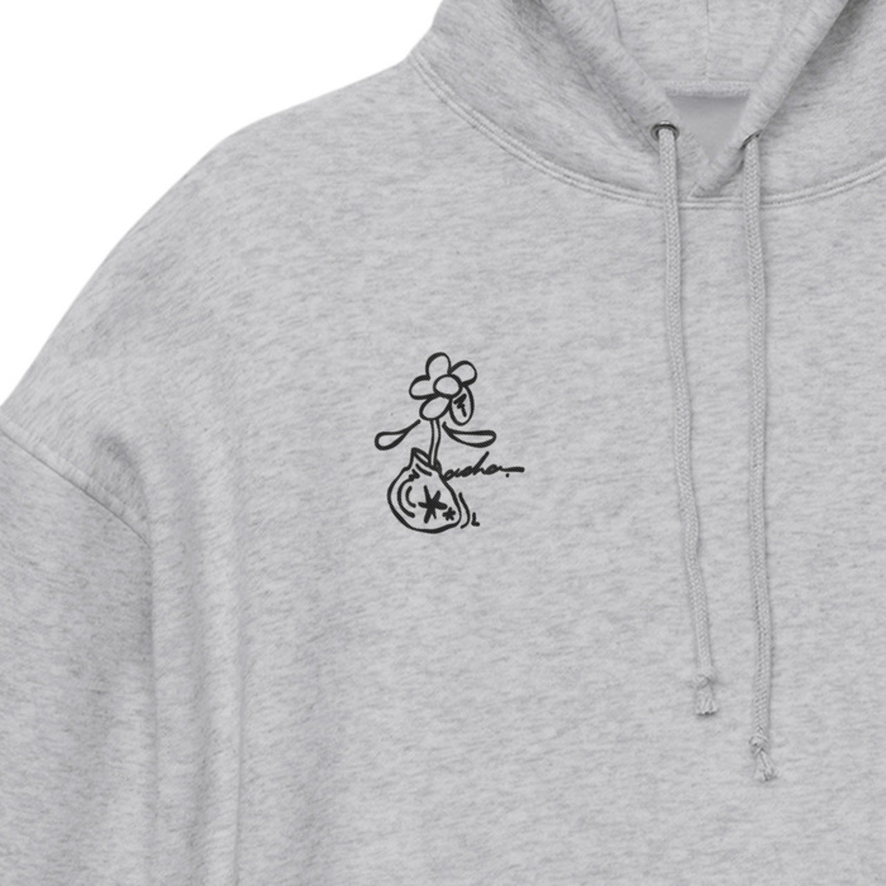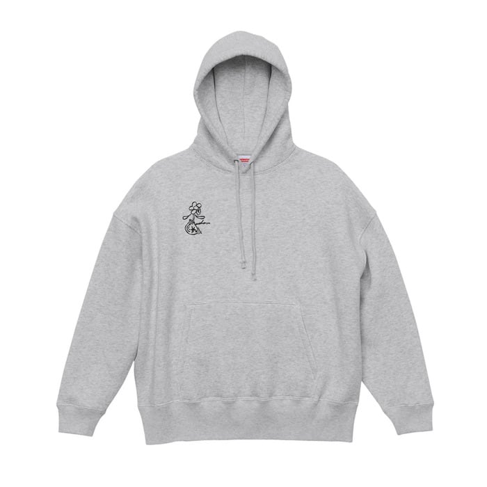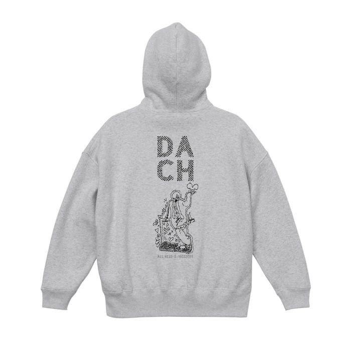 胸にdachaロゴの刺繍が入ったビッグシルエットフーディー。